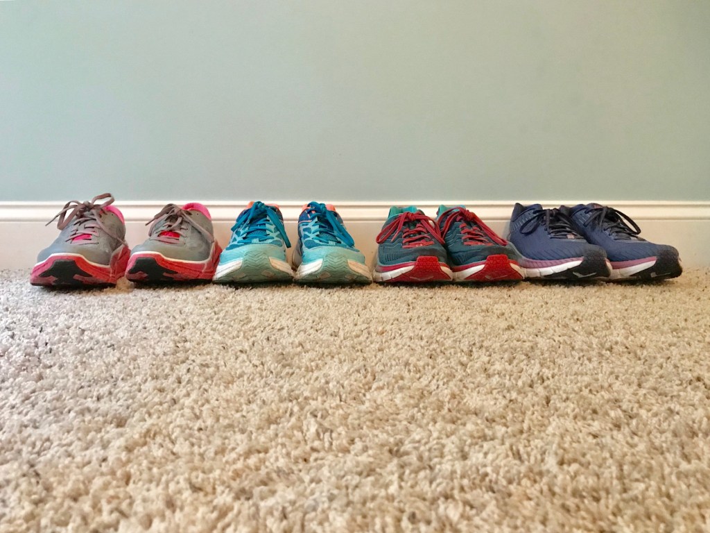 This picture shows 4 generations of the Hoka Clifton, starting with the Clifton 2. I own 4 pair of these, two pair of the 3’s, two of the 4’s, one of the 5’s, and I’m currently training in the 6. Most of these I purchased at my favorite local running store, Lucky Road Run Shop based in Richmond, VA.
