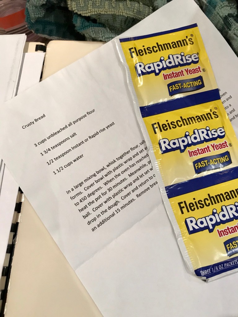 I visited 3 grocery stores over the weekend. Shelves were almost empty. I’ll admit to panic shopping. I seriously felt like I was in the midst of a dystopian movie. I’m sure most of you can relate. The biggest surprise was that no one had bread. Yikes! But I regrouped to solve the problem. I remembered that I know how to make bread easily. So I picked up some rapid rise yeast. Everything else I need for bread I keep stocked in my pantry.