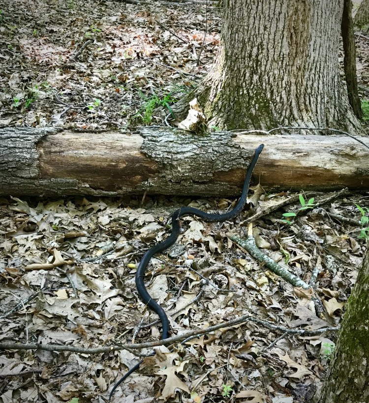 One of the three black snakes we encountered. These are good, non-venomous snakes who keep the rodent population under control. They also love chicken eggs… my husband is quite the snake wrangler and used to pull them out of the chicken coop for me when we kept chickens.
