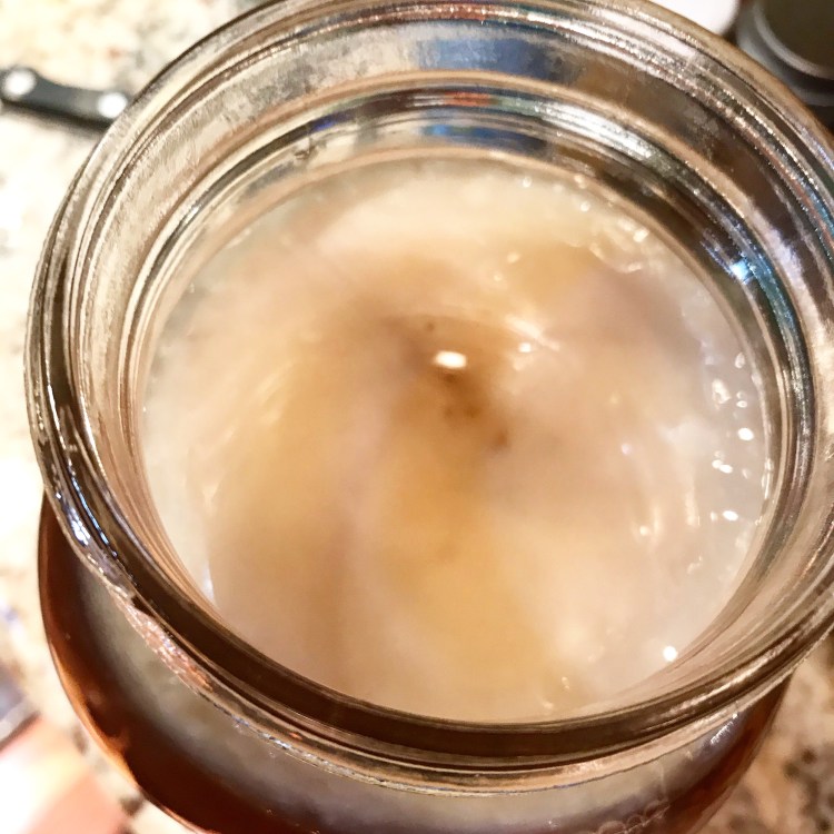 So, why kombucha? The main attraction is the beneficial bacteria in the tea that are thought to promote a healthy gut biome. This begins with the SCOBY, or symbiotic colony of bacteria and yeast, which is introduced into sweetened green or black tea. My scoby has bacteria from GT’s, but has also likely pulled from my home’s environment to grow. It’s kind of like growing a sourdough starter.