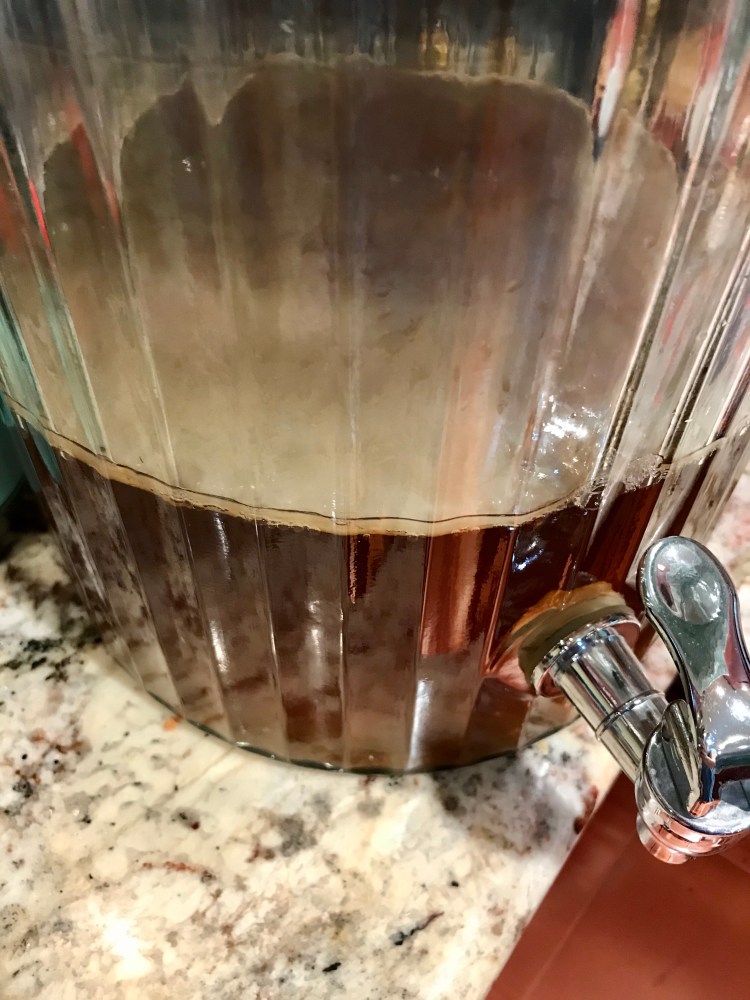 Inspired by some of my friends, I decided to give it a go with brewing. I’ve been using instructions from The Kitchn to grow my own scoby and brew my first round of kombucha. I used GT’s original as my starter for both. I’m using a glass party drink dispenser for brewing, which has created quite a large scoby from my original baby! The good news is at this size, I can brew a double batch next go round.