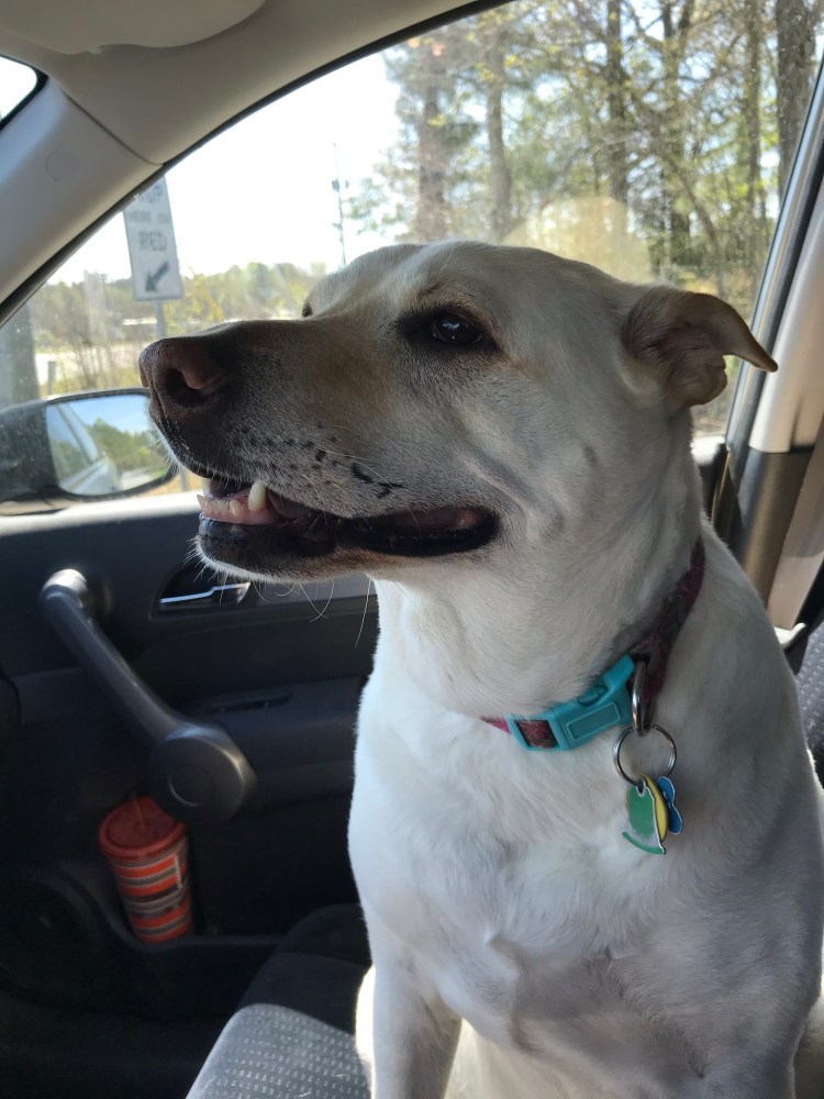 The research began, and my husband found a litter of blonde, lab mix puppies available for adoption at the Richmond Animal League. There were two boys and a girl. We drove over to meet the litter in person. I was the first one to hold Ellie. She essentially melted into my arms. At that point, I couldn’t not take her home! After she was spayed and recovered, we were allowed to bring her home.