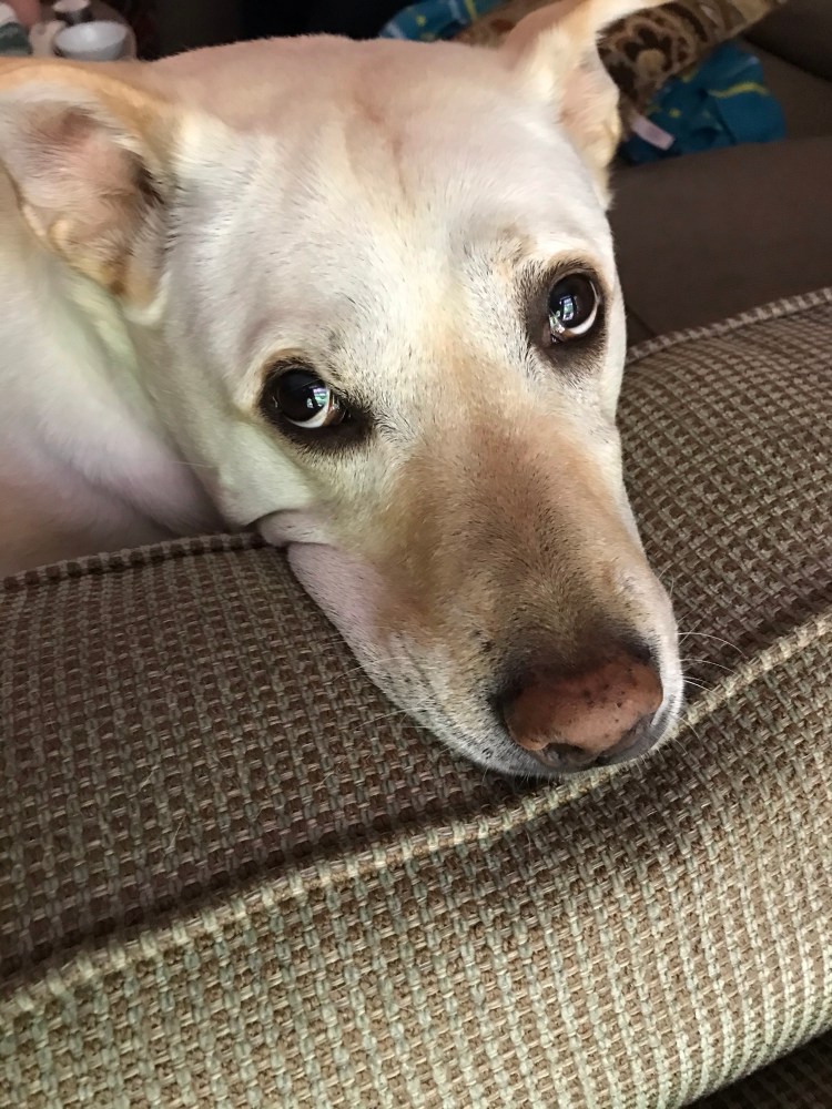 Ellie is now approaching 9 years old, and she is starting to show her age. Her hips have limited range of motion from dysplasia, so she’s not up for long walks or adventures in the woods, and she needs a bit of help getting into the car for rides. She gets pain medicine daily to help improve her comfort. But she’s my baby, and I love her.
