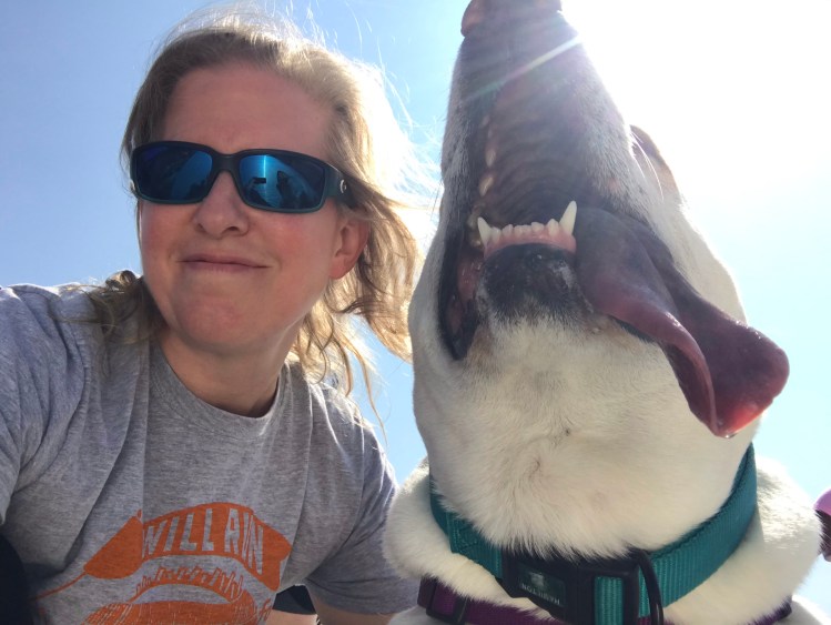 She gave me the gift of understanding what a joy dogs are for humans. They add so much to our wellness, indeed. Ellie is gentle, eager to please, and does a great job of warning us when someone is driving up to the house. I love her greetings when I get home; always a bright spot in my day. My girl loves a car ride, too! And now when I’m out and about, I have to meet all the dogs, especially when out for a run. And although I will always be a cat person, there’s an equally special part of my heart that loves dogs now, too.