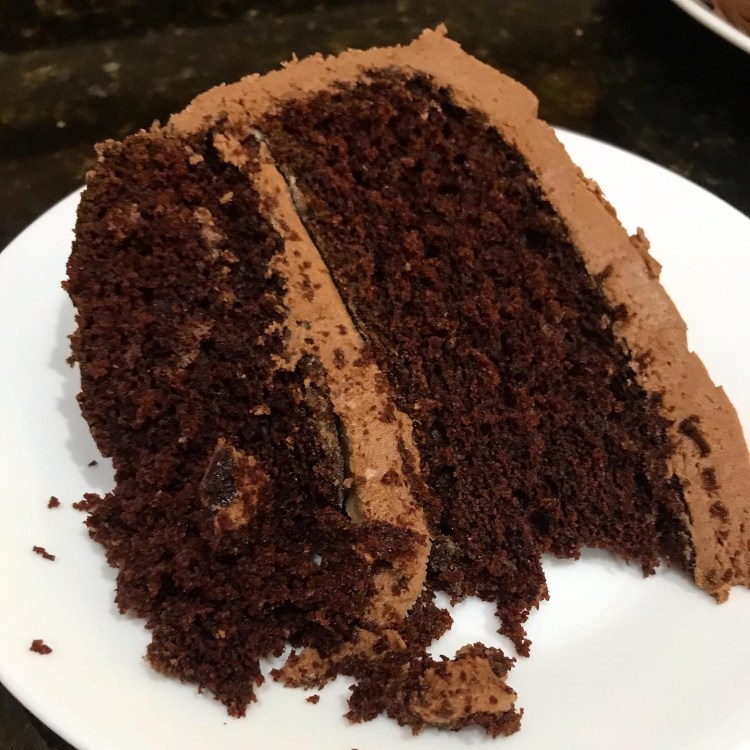 Of course, I finished my meal with my favorite chocolate cake made from the recipe from King Arthur Flour paired with the vegan chocolate frosting recipe from Loving It Vegan. Good stuff.