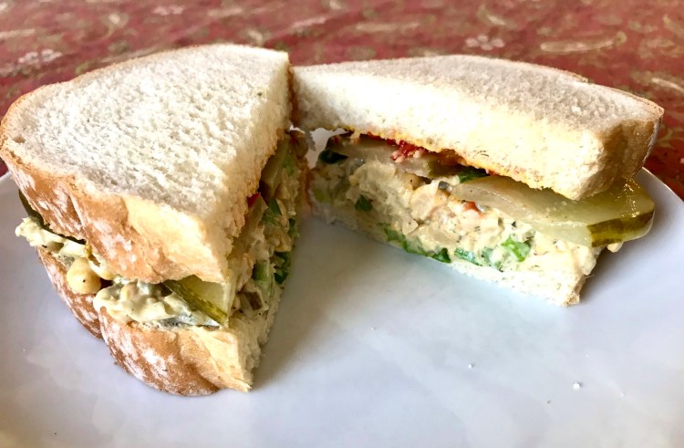 Now that your mix is made, you can use it in multiple ways! As a sandwich, I like to add more mustard and sliced pickles to add more kick. I’ll also add sliced tomato when they are in season. You can also make this into a wrap, adding whatever veggies you like. Or simply make it a great addition to a garden salad. Just like most salads, there is no exact science to making this recipe. Make it your own! This makes enough for 3-4 servings. Enjoy!