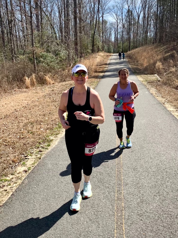 This race is new this year, and there was a marathon course and 5k as well. It roughly followed the course that Sports Backers used from Dorey Park along the Virginia Capital Trail last year for the Richmond Marathon races, as the format needed to change due to the pandemic. For this race, they kept the window when you could run to 3 days instead of a couple of weeks. They also tweaked the course a bit, which Patty and I really liked. There was an out and back that took you past Dorey Park that was tacked onto the end of last year’s race, but they made that part first this year. Mentally, that was better for me! They also had Nunn on the course!