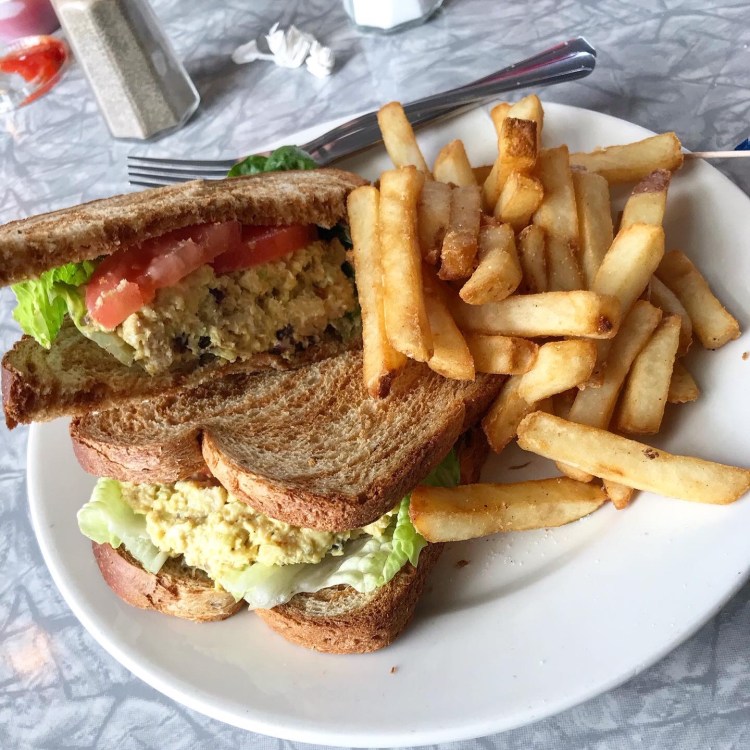 The curried “chicken” salad sandwich and fries. Seriously one of the best sandwiches I’ve ever eaten, and their fries are perfect!