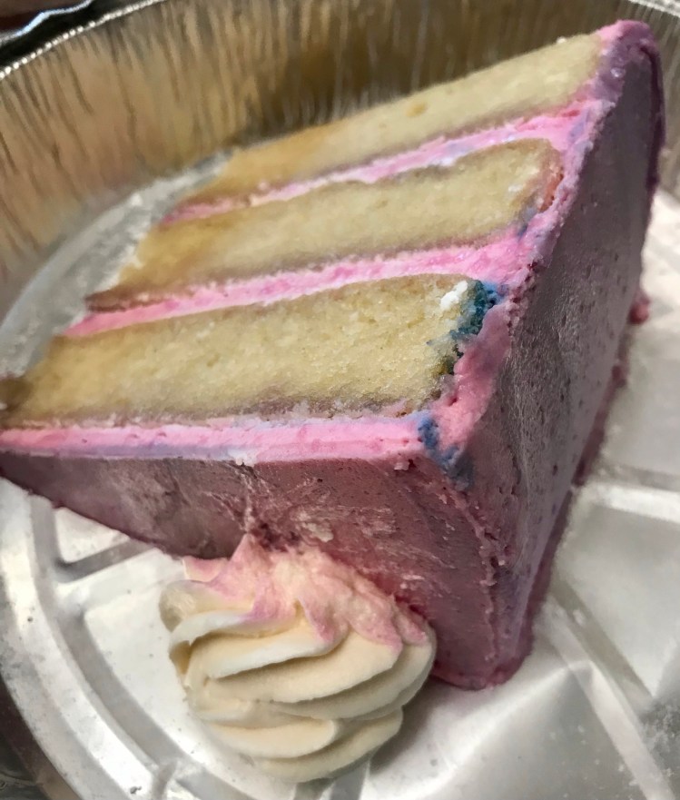 We all ended up ordering from the brunch menu, although we were all torn between sweet and savory. To solve this dilemma, I ordered the vegan chai French toast for the sweet and home fries for the savory. I would have tried their vegan special, which was biscuits and gravy, but they had sold out! My older daughter ordered the lemon curd stuffed French toast, while my younger daughter got the regular brunch special: smoked Gouda grit cakes with eggs. Both vegetarian meals. We were very happy with our choices! We also got a slice of vegan cake to go. All of their vegan cakes are made by Buttermilk Bake Shop in Petersburg. They had sold out of every variety but the cotton candy cake. It was very good, and very sweet, but definitely tasted like cotton candy.