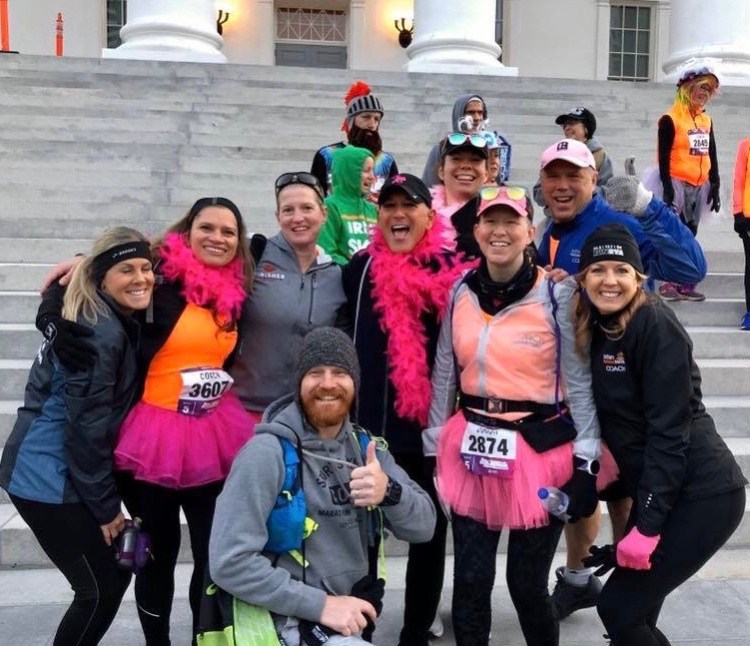 I am back coaching with the Pink Nation, one of MTT’s subteams. We are a “500” team, meaning novice, but the names of teams were changed to reflect total mileage, not experience level. Another key difference between the 500 and 700 teams is that we only run one 20 miler instead of three. I will forever choose to run a novice schedule for marathon training and incorporate more cross training to reduce my risk for injury. That’s just what works for my body. But if you are a more experienced runner chasing a Boston qualifying goal, or perhaps are running an earlier fall marathon, the 700 schedule may suit your needs better. There’s a subteam for everyone on MTT!