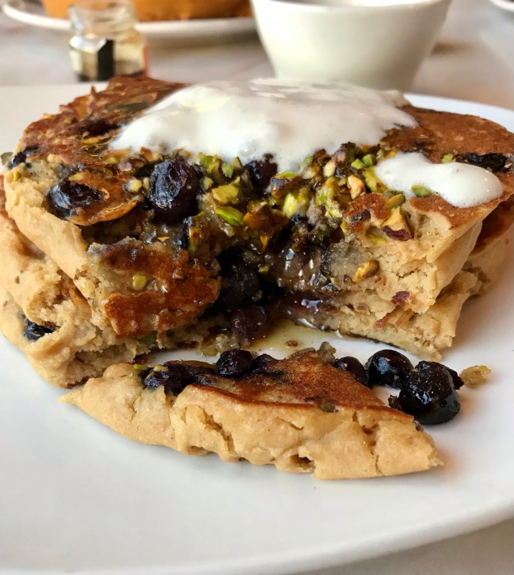 I was really happy with my meal. The sausage was really tasty. The pancakes were amazing! Packed with blueberries, the real surprise was the addition of crushed pistachios! With a whopping 40g of protein, they came with a side of agave syrup and coconut whipped cream, which added a perfect extra sweetness to these.