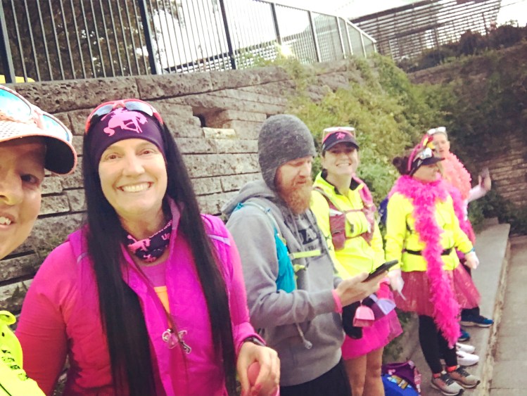 Our final runners from our team had been granted a head start. They started their race an hour earlier so they could beat the cutoff. Doris, Sue, and Veronica set out before sunrise. This was not Veronica’s first race, but she certainly sacrificed her time to make sure these ladies made it to the finish. Having served in this role myself at times, it’s heartwarming to witness. It’s a different kind of joy taking a new marathoner (or two!) under your wing for an entire marathon. Witnessing the perseverance of these first time marthoners throughout the season and watch them meet their goals, regardless of time, is a testament to the human spirit. So grateful to Coach Carrie and Sports Backers for making the early start happen! It really does take a village to raise a marathoner.