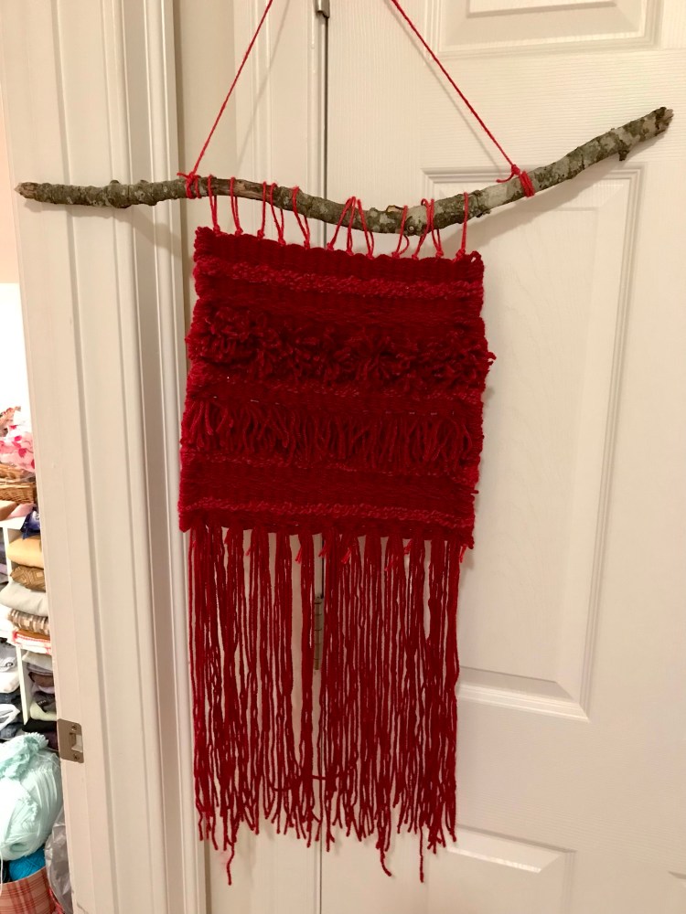 I’ve really enjoyed sitting down to work on a task that can become somewhat mindless, much like running. I ponder all kinds of thoughts as I’m weaving the yarn through the loom. I am pleased with my first efforts! Now I’m super excited about making more weavings. I’ve now made 2: one for each of my daughters. I hope they like them!