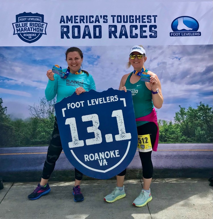 With a new friend and fellow ambassador, Jen, after the Foot Levelers Blue Ridge half marathon.