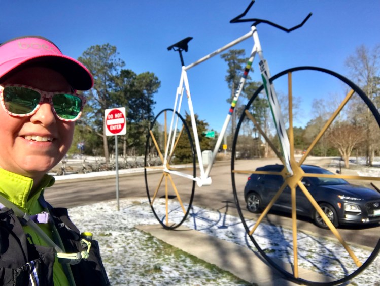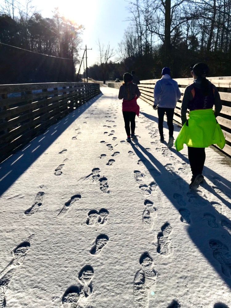 Overall, I had fun with my friends, and having run this course before, I knew what to expect. There was water and Nuun available every couple of miles with adjacent porta-potties, too, as last year. What was new were the ice patches and debris from the storm. Just enough to keep things interesting. We walked the ice patches, since none of us were super interested in falling. Safety first!