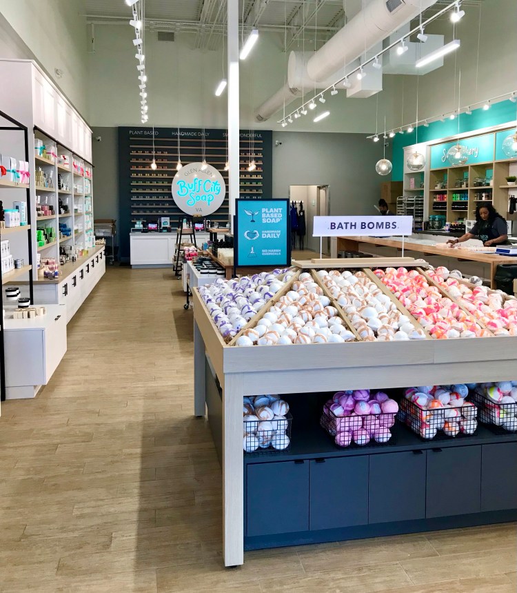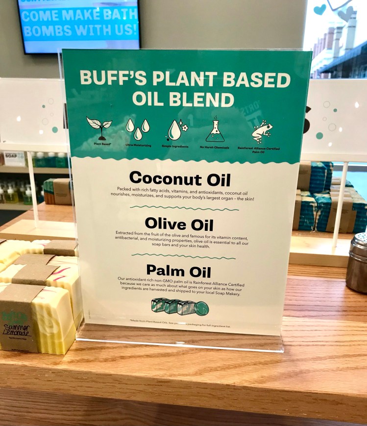 On one of my last trips to Trader Joe’s in Short Pump, I noticed a colorful new storefront next door. Buff City Soap is new to the Richmond area, and I’m pretty excited about it! There is another location in Willow Lawn as well. The promise of plant based soaps and no harsh chemicals drew me in the door!
