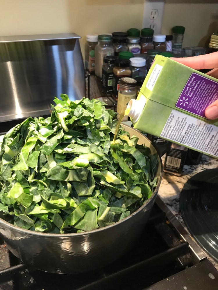 1 package pre-cut fresh collard greens OR two packages frozen OR fresh greens, de-stemmed and thinly sliced (for this photo op I used the pre-cut fresh greens)