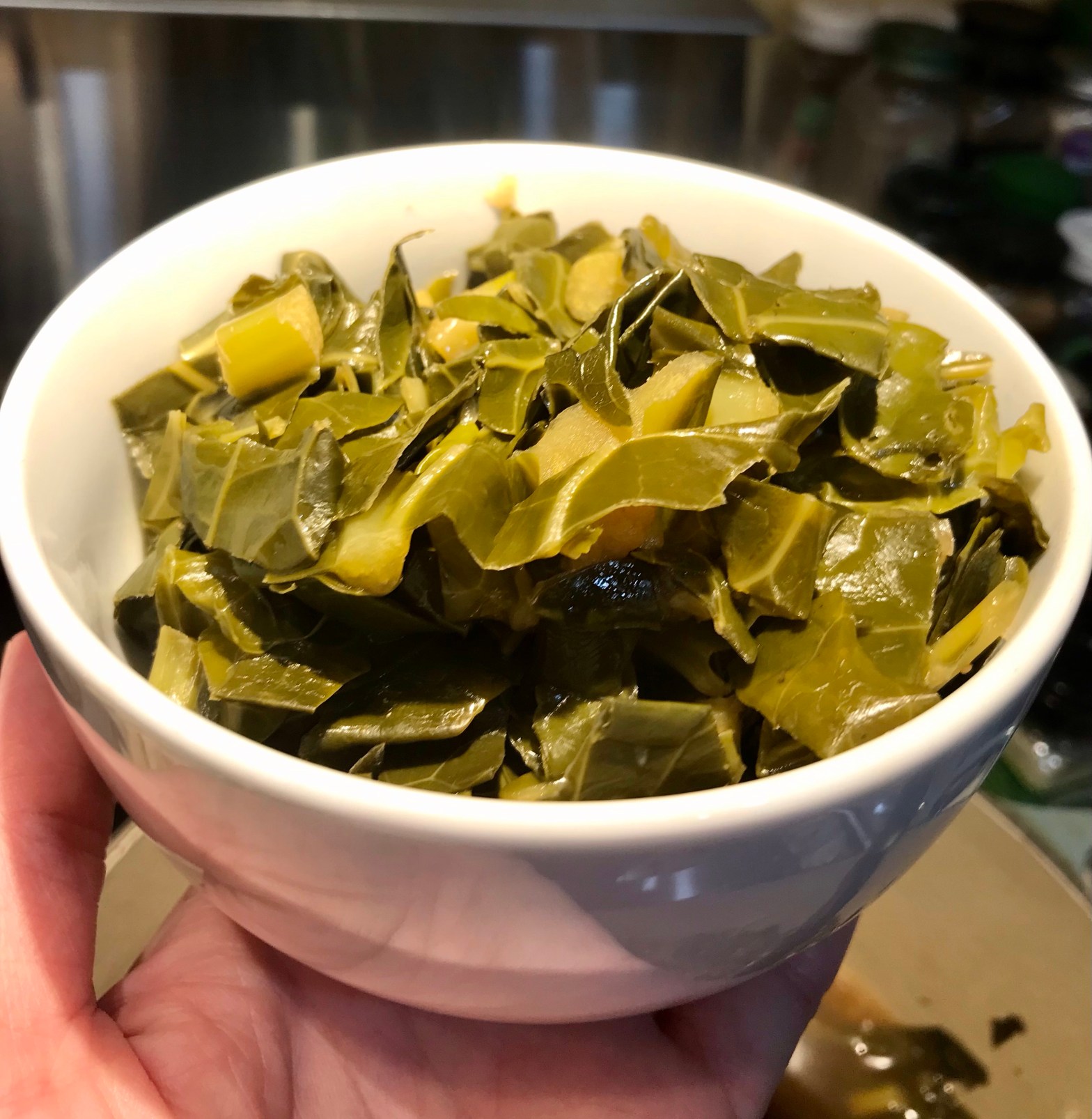 Even back then, not yet a full vegetarian, I did not eat pork, so I had to come up with a way to cook these and still bring great flavor to these nutritious, bitter leaves that are full of vitamins and a traditional part of a New Year’s Day meal. But I did create methods that delivered on taste and tenderness.