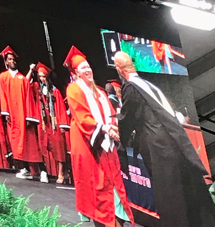 Not only that, but my pink and blue Hokas perfectly matched the bright blue dress I wore later that day! My running shoes were the perfect accessory.