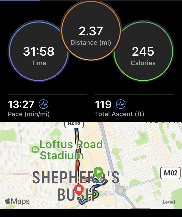 I ran past two tube stations which were so crowded that I had to walk, it was trash day in the neighborhood, so there was much dodging of full garbage bags, and there were very few runners out. The runners I encountered didn’t wave like in America. They were all business!
